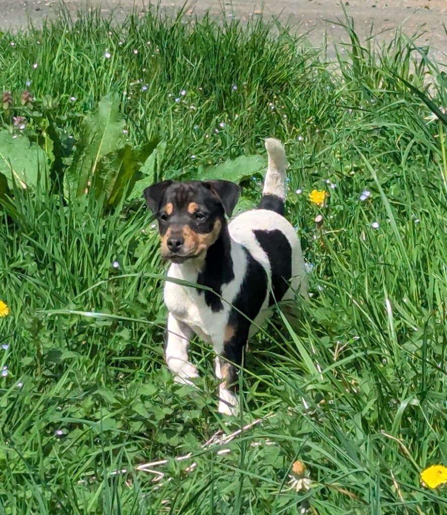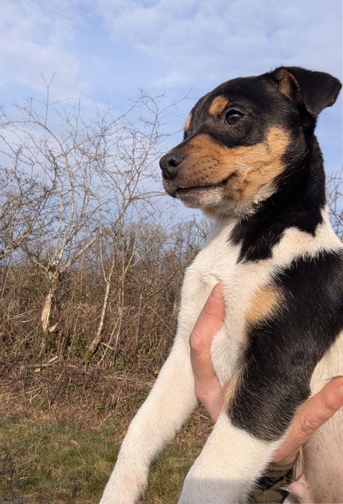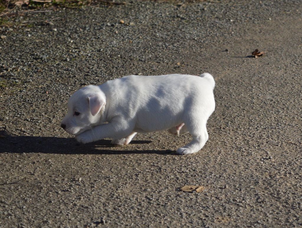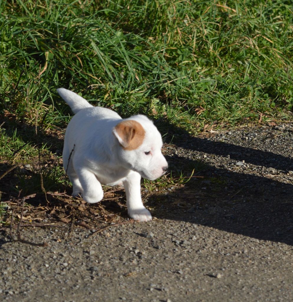 Vidocq est un chiot très doux et affectueux, sociable, mais bien entendu avec l'énergie (course, jeux...) qui caractérise les russells.