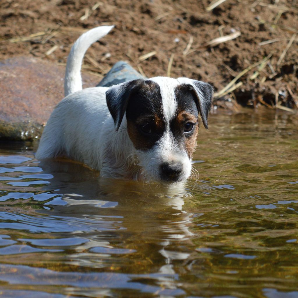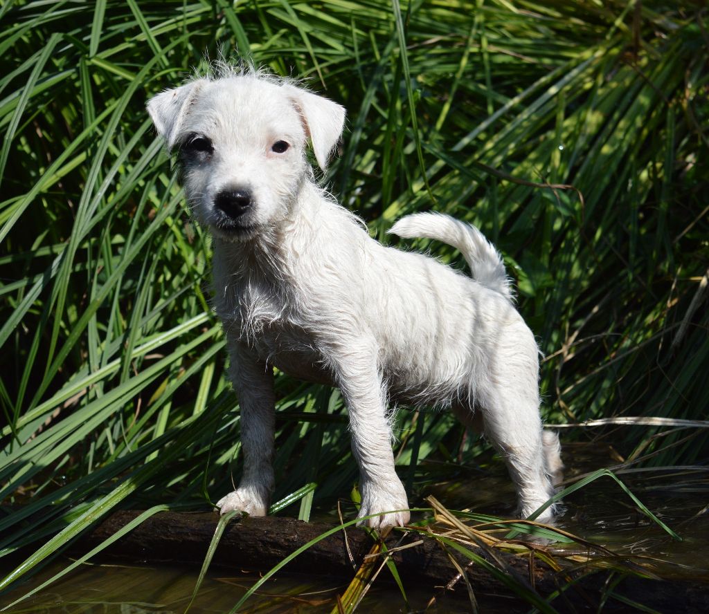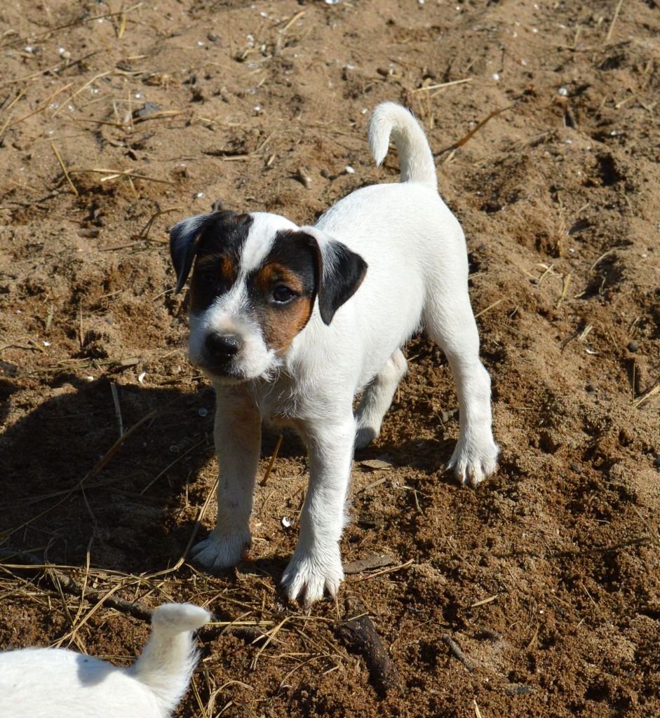 Tricolore poil broken, bâti sur le modèle compact et osseux de son papa Sunshine, avec une superbe tête carrée et une belle construction. Très affectueux et proche de l'homme, beaucoup de personnalité.